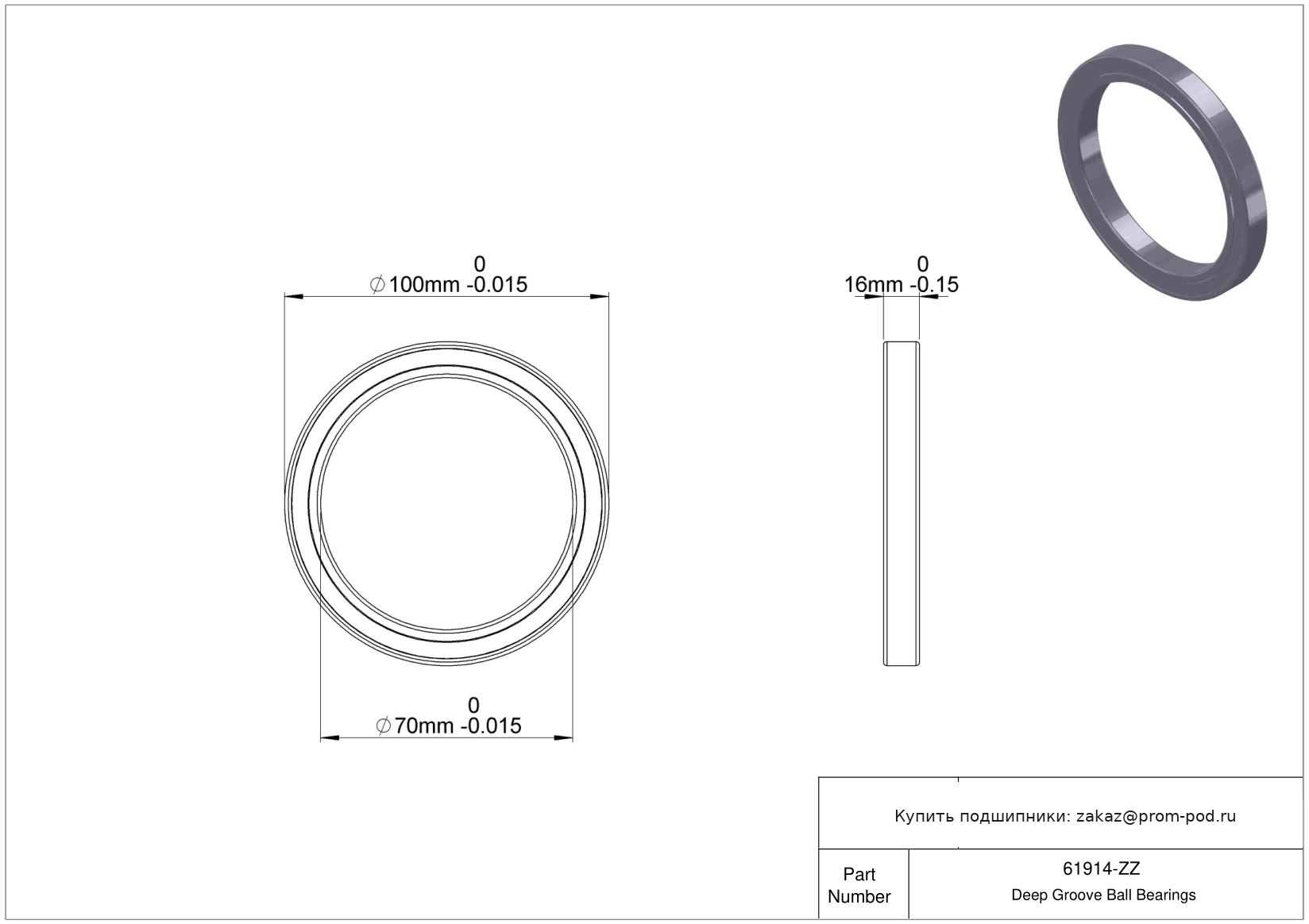 | 6914zz | Шариковый подшипник | Два уплотнителя из синтетического каучука. |