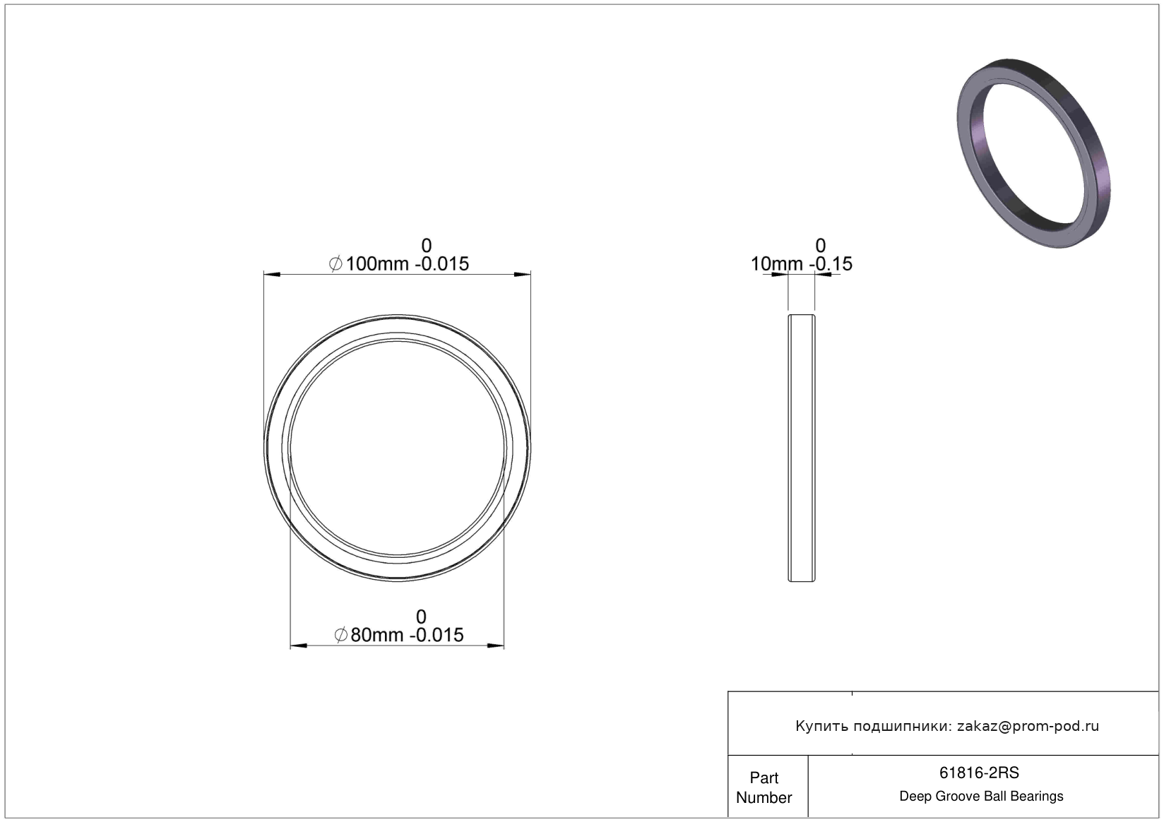 | 6816 2RU | Шариковый подшипник | Бесконтактное уплотнение с двух сторон. |