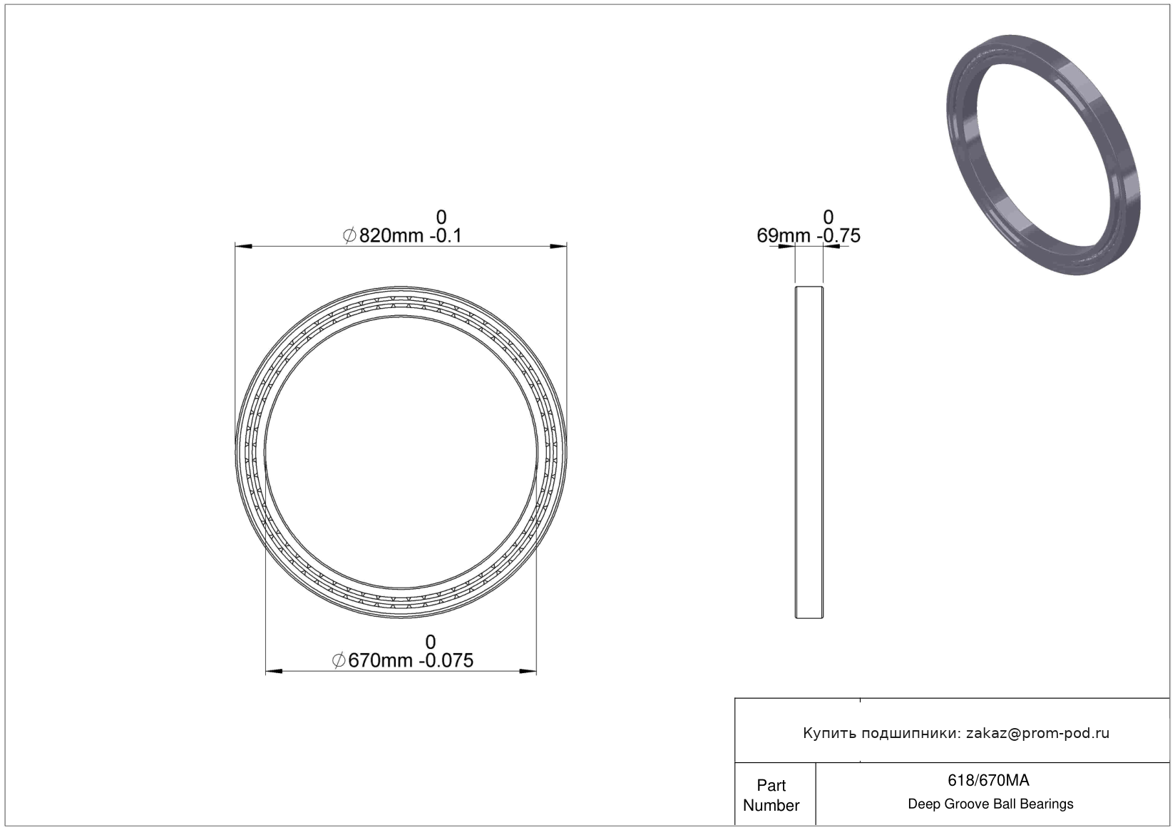 | 68/670MC3 | Шариковый подшипник | Радиальный зазор 5-10 µm. |