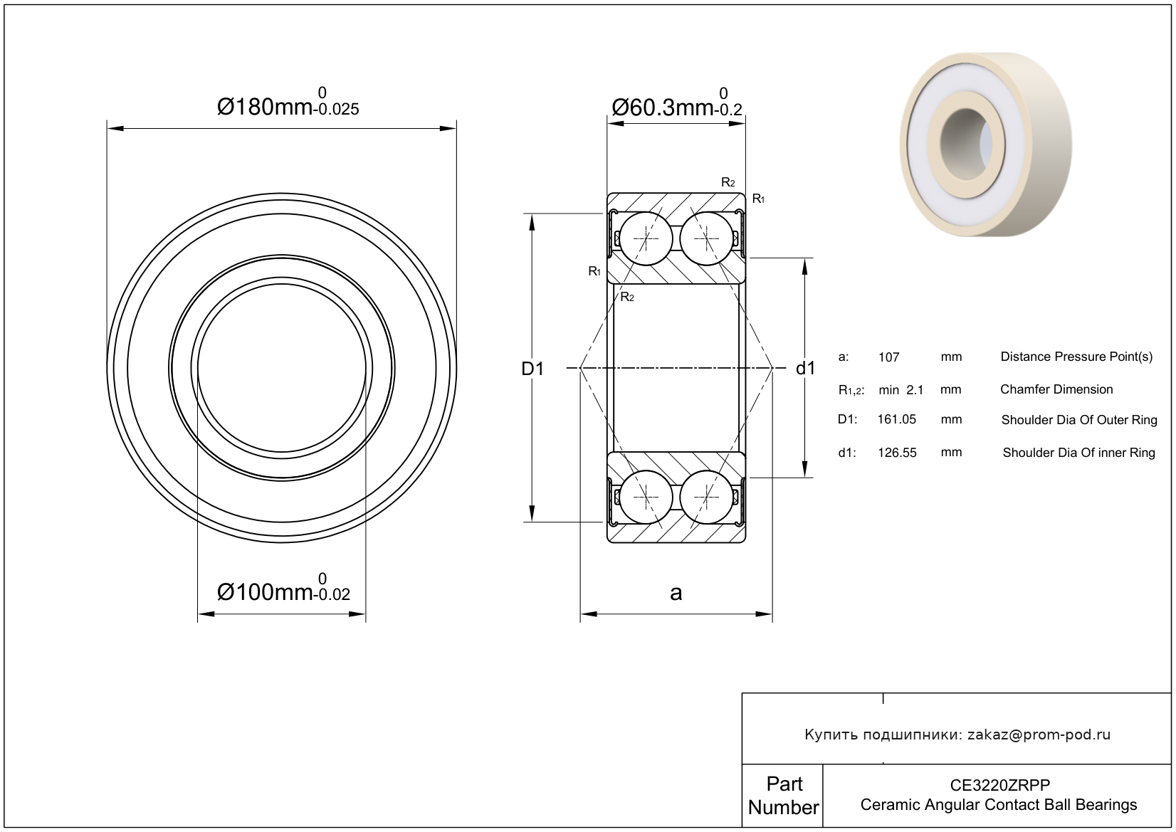| SS3220 2RS | Радиально-упорный шариковый подшипник | Уплотнение с обеих сторон, NBR. |