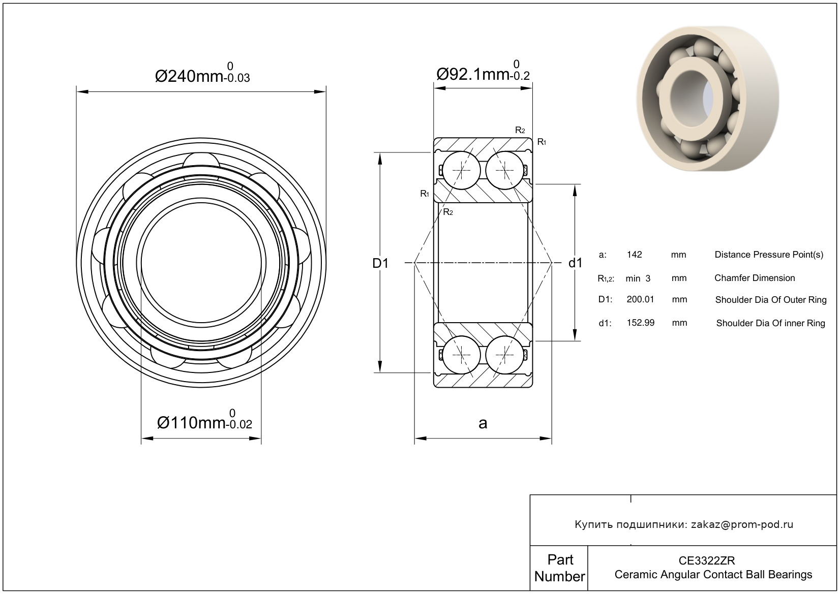 | SS3322 2RS | Радиально-упорный шариковый подшипник | Уплотнение с обеих сторон, NBR. |