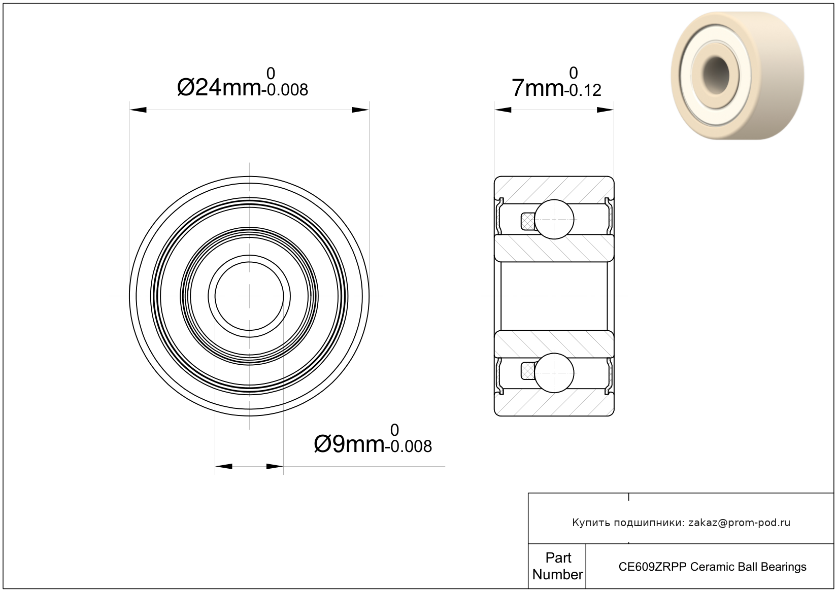 Керамическими шариковый подшипник с силиконовой изоляцией. Контактное уплотнение с двух сторон.