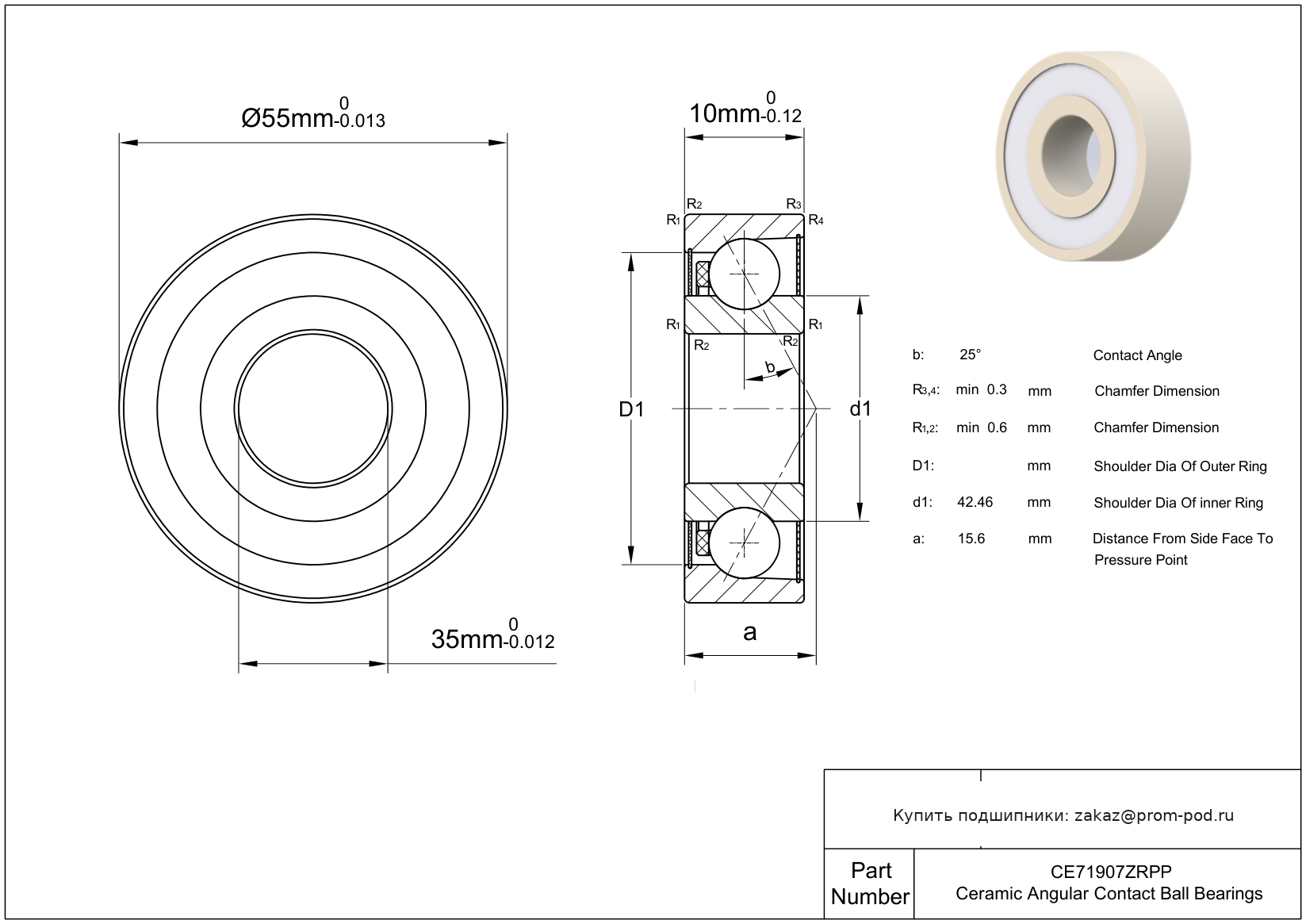 | SS71907 2RS | Радиально-упорный шариковый подшипник | Уплотнение с обеих сторон, NBR. |